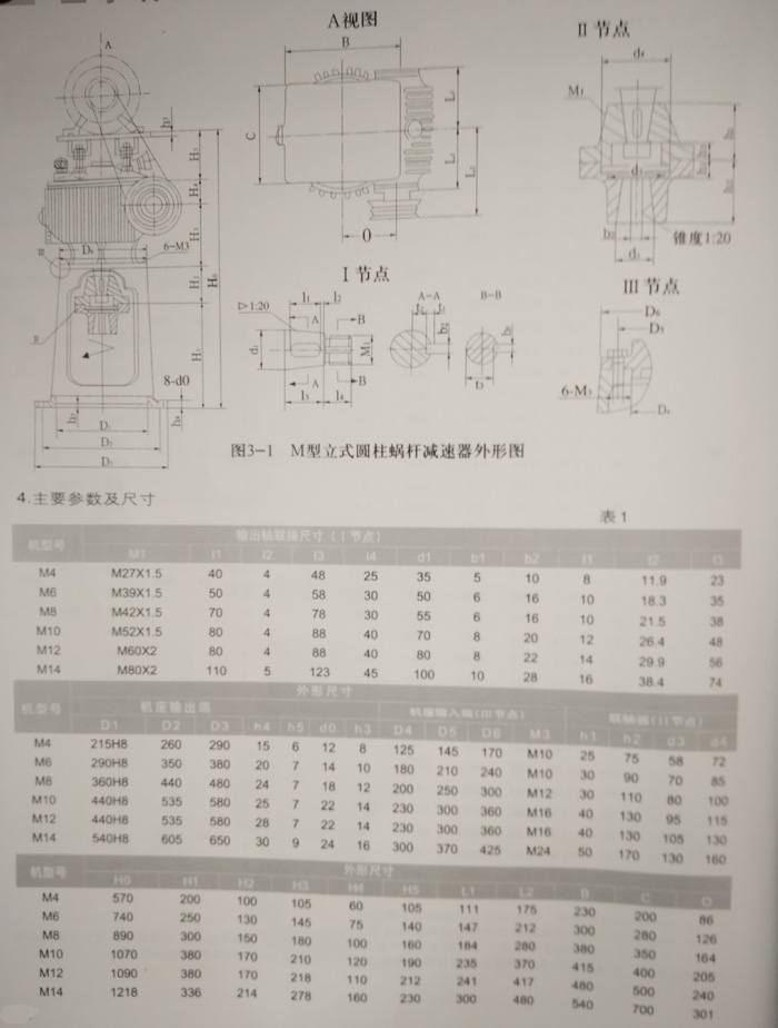 M型立式圓柱蝸桿減速機(jī)為二級(jí)減速傳動(dòng)機(jī)構(gòu),第一級(jí)為皮帶傳動(dòng),第二級(jí)齒形為阿基米德圓柱蝸桿蝸輪傳動(dòng)。其特點(diǎn)有:結(jié)構(gòu)緊湊傳動(dòng)比大、工作平穩(wěn)可靠、無(wú)噪音、蝸桿螺線導(dǎo)程角的情況下減速機(jī)具有自鎖性。
