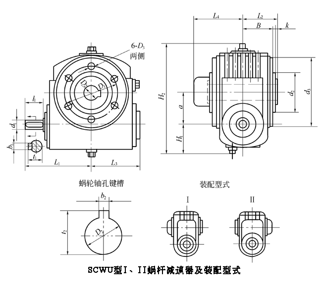 a、SCWU 型—蝸桿在蝸輪之下的軸裝式蝸輪蝸桿減速機(jī);