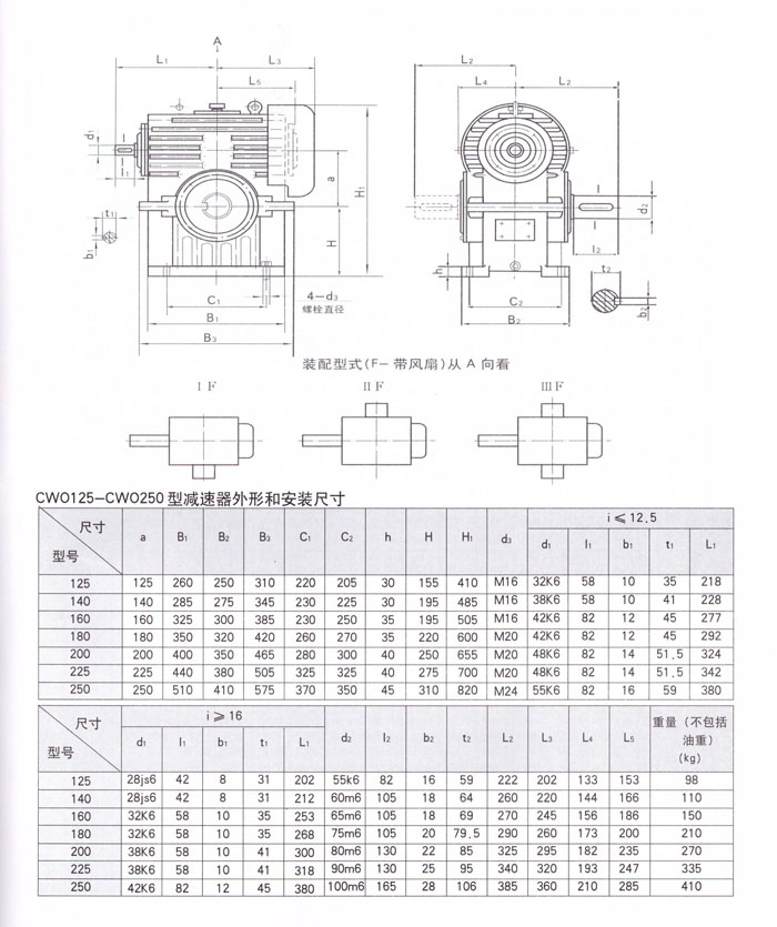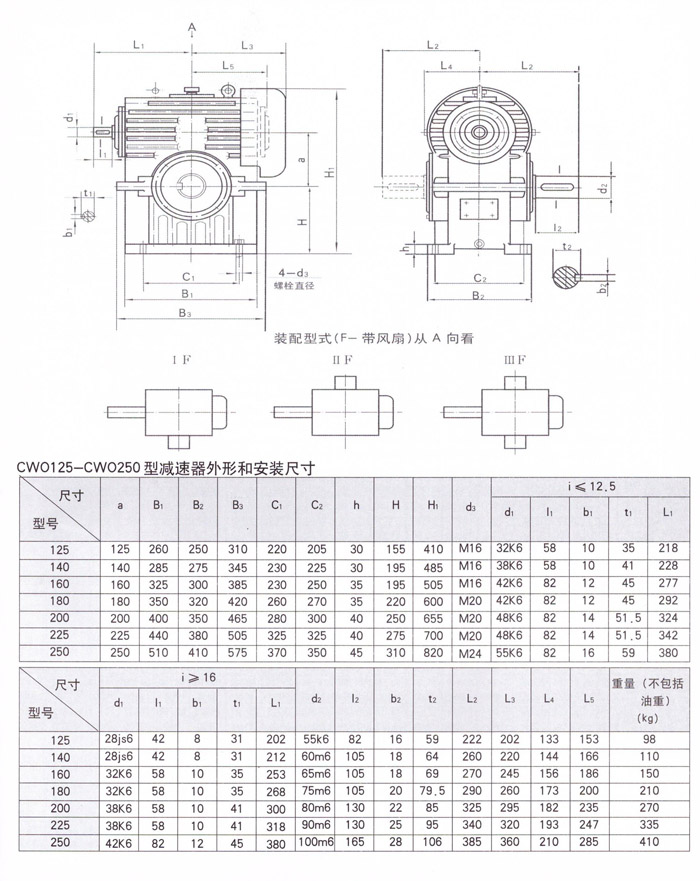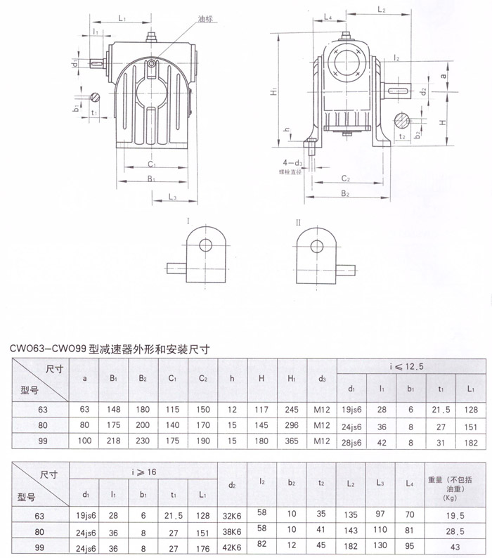 CWS蝸輪蝸桿減速機(jī)安裝型式有四種:I、II、III、IV。